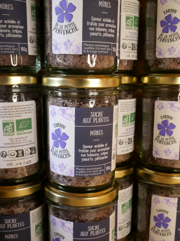 Je vous propose une gamme de sucres aux plantes locales, pour aromatiser de façon originale vos boissons (limonades, tisanes, thé glacé...), crêpes, yaourts, pâtisseries, salades de fruits, desserts, et bien d'autres ! Le tout en profitant des vertus nutritionnelles des plantes, séchées à basse température, et sans aucun arômes ni additifs. Afin de réduire l'empreinte environnementale, le sucre est non raffiné, issu de betteraves cultivées en France en agriculture biologique.