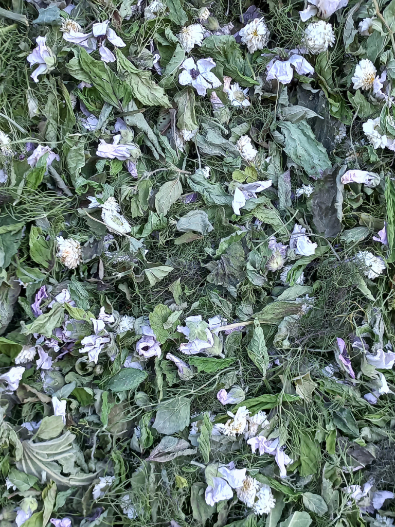 Je vous propose plusieurs associations de plantes choisies pour leurs saveurs et leurs vertus médicinales, confectionnées à partir des plantes cultivées et cueillies sur la ferme. La disponibilité de certaines plantes et la composition exacte des mélanges peut donc varier en fonction des récoltes. Contrairement aux tisanes du commerce, elles ne contiennent aucun conservateur, arôme ou exhausteur de goût. Si vous ne trouvez pas votre mélange, contactez-moi !